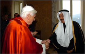 Pope Benedict XVI greets an unidentified Muslim envoy Monday